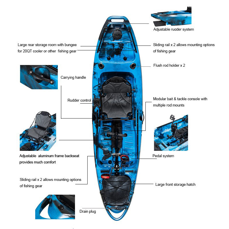 Tämä CHANHONE® Fishing Pedal Kayak tarjoaa erittäin edullisen poljinvetoisen kalastuskajakin kompaktissa ja ketterässä paketissa. Tämä 3 metrin pituinen 34,6 tuuman säteellä varustettu kajakki tarjoaa runsaasti vakautta ja sopii erinomaisesti rauhallisiin päiviin sisävesillä ja suojaisilla suistoilla tai lahdilla tutkimiseen ja kalastukseen. Täydellinen paikka kevyeen viehekalastukseen!